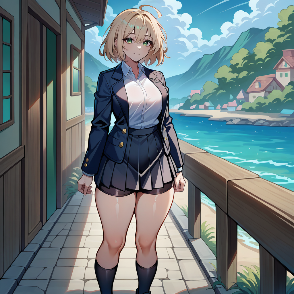 Physical Prompts 1girl, solo, light brown hair, hair between eyes, medium hair, sidelocks, ahoge, bangs, green eyes