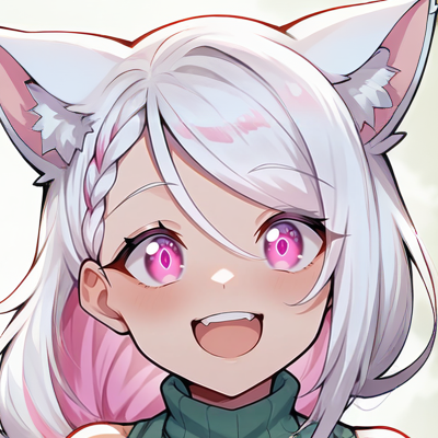 1girl, solo, white hair, long hair, single sidelock, braided ponytail, straight hair, swept bangs, hair between eyes, white cat ears, pink eyes