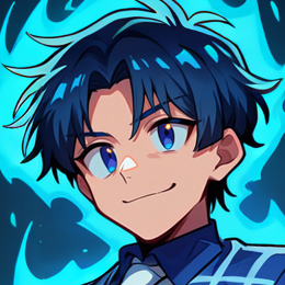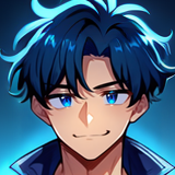 Physical Prompts 1boy, solo, <lora:male_solo_focus-000009:1>, male focus, black hair, (from black to dark blue hair, gradient hair:1.2), blue wrickles, parted bangs, blue fringes, forehead, short hair, dark blue eyes