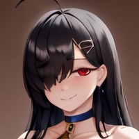 1girl, solo, black hair, very long hair, parted bangs, swept bangs, bangs, hair over one eye, antenna hair, purple eyes