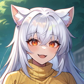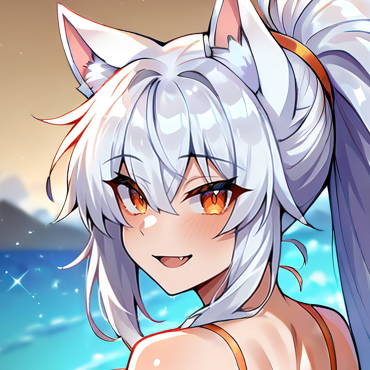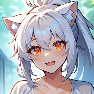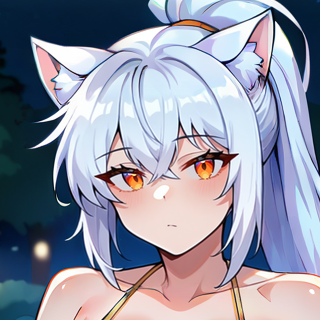 Physical Prompts 1girl, solo, white hair, long hair, ponytail, bangs, hair between eyes, white cat ears, orange eyes, futanari, full-package futanari, penis