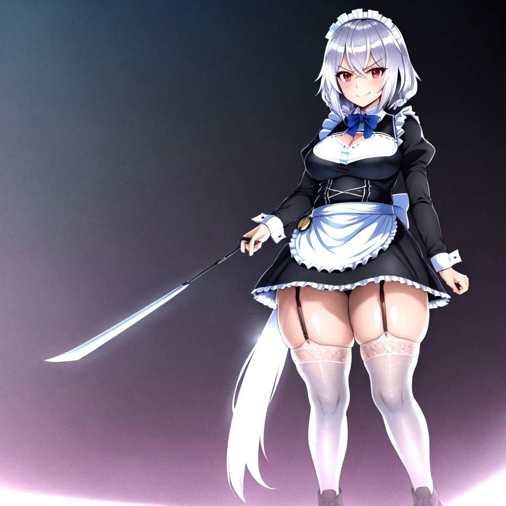 1girl, solo, silver hair, hair between eyes, bangs, swept bangs, sidelocks, short hair, braid, twin braids, front braid, light blue eyes, (izayoi sakuya:0.6)