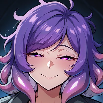 Physical Prompts (purple skin, black skin:1.5), slime girl, slime \(substance\), swept bangs, medium hair, messy hair, (mature female:1.3), purple eyes, half-closed eyes, wrinkled skin, wet, <lora:SlimeC:1>, colored sclera, black sclera,