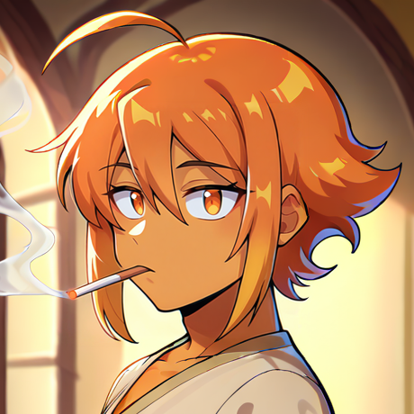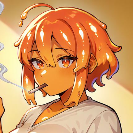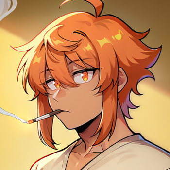 Physical Prompts 1girl, solo, dark skin, orange hair, blunt bangs, swept bangs, hair between eyes, sidelocks, ahoge, short hair, orange eyes