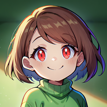 Physical Prompts 1girl, solo, chara /(undertale/), brown hair, square cut, swept bangs, bangs, short hair, red eyes