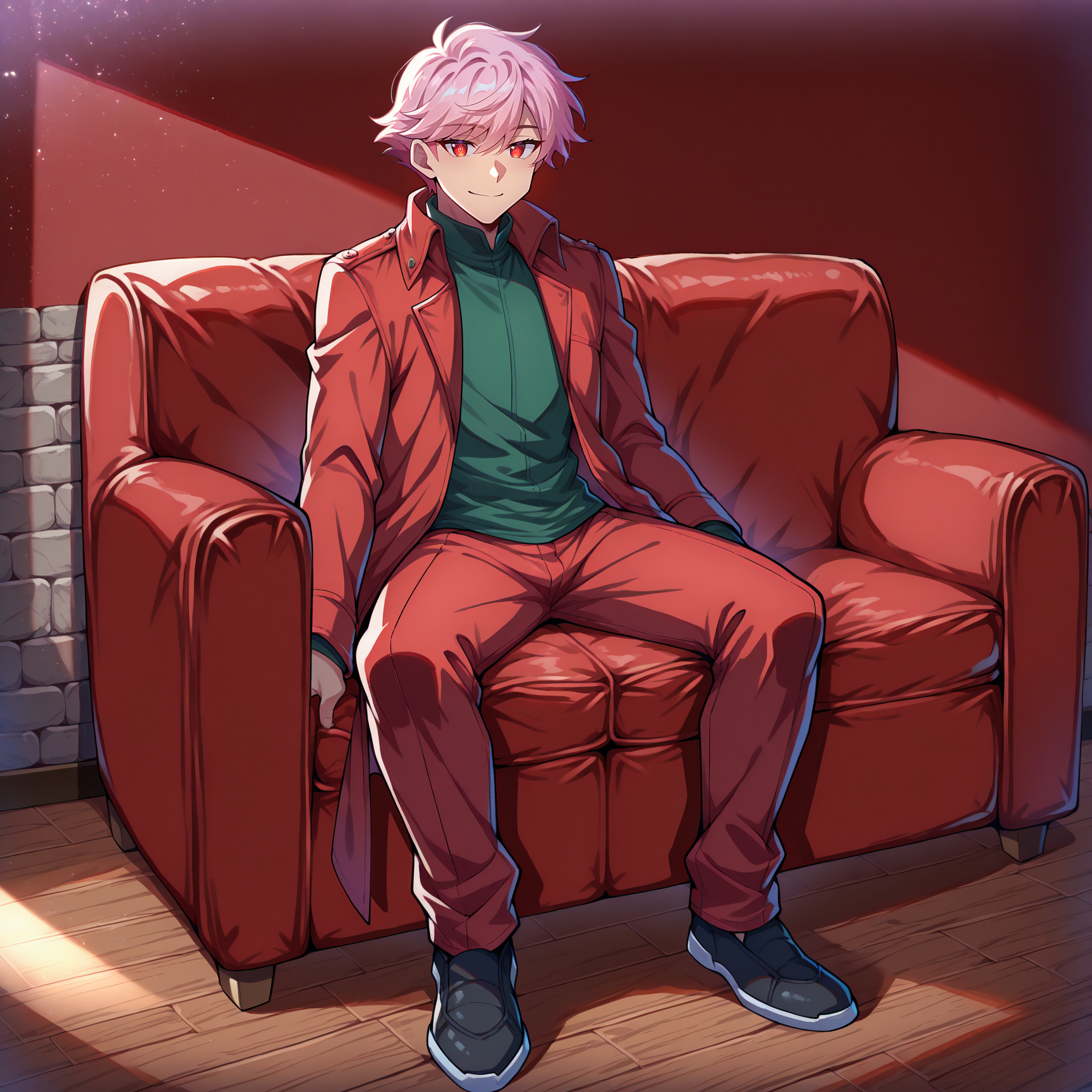 Physical Prompts 1boy, solo, <lora:male_solo_focus-000009:1>, male focus, pink hair, short hair, swept bangs, hair between eyes, red eyes