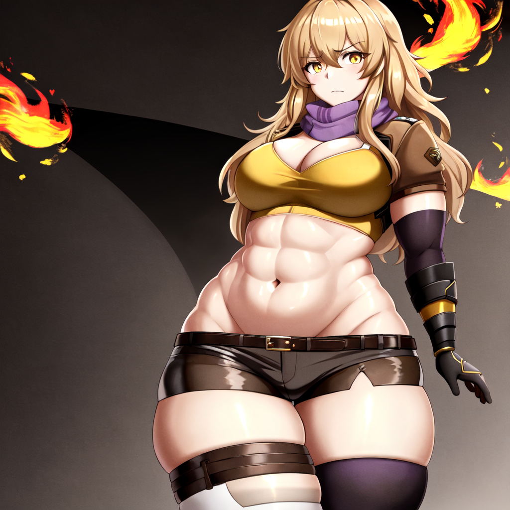 muscular female, thick thighs, large breasts