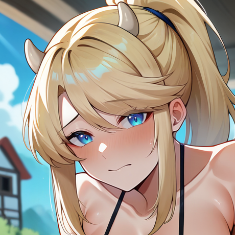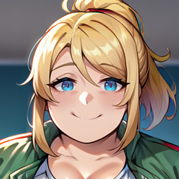 Physical Prompts 1girl, solo, blonde hair, ponytail, hair between eyes, bangs, sidelocks, swept bangs, blue eyes