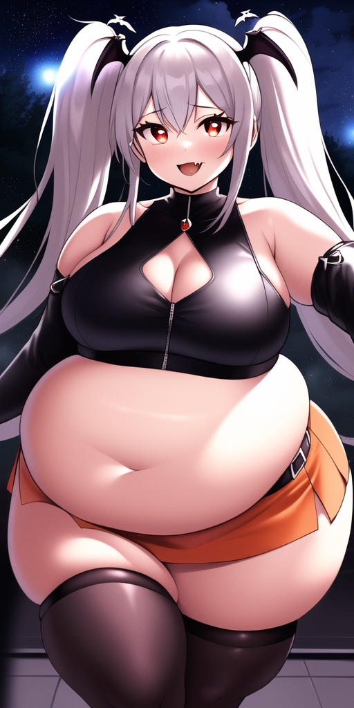 cute eyes, beautifully detailed eyes, midriff, cleavage, disheveled, white hair, red eyes, long hair, twintails, (vampire:1.3), (fang:1.1), princess, succubus,