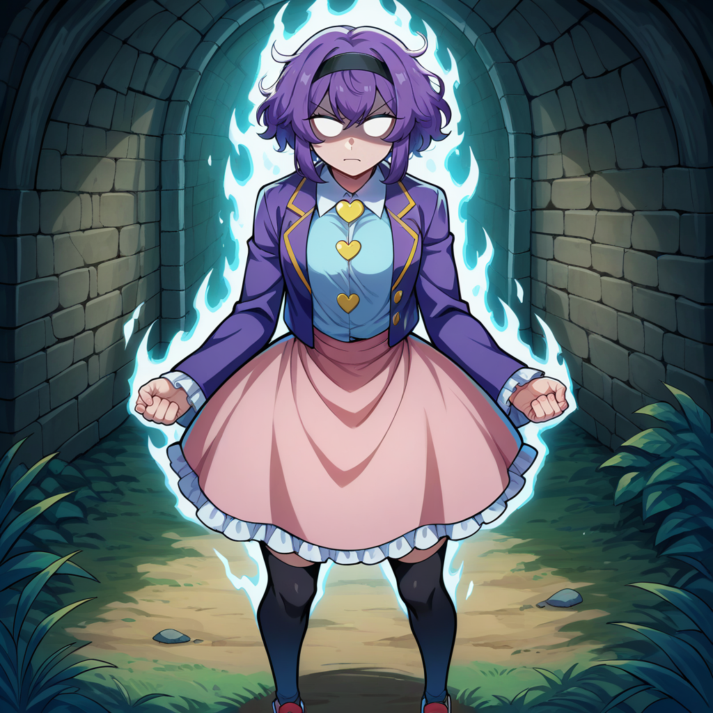 1girl, solo, purple hair, messy hair, sidelocks, short hair, (komeiji satori:0.4), white eyes, (white aura:1.2)