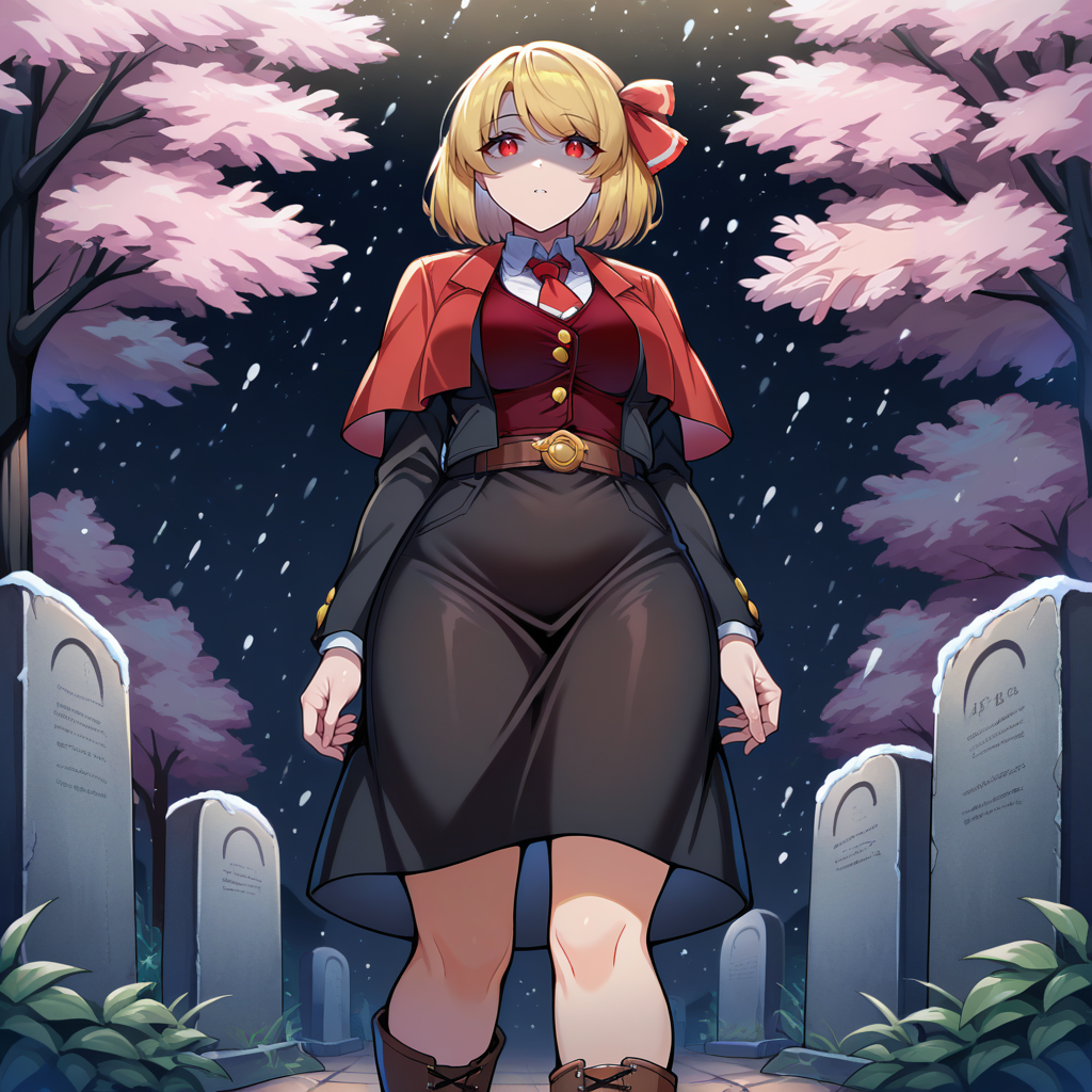 1girl, solo, rumia, ex-rumia, blonde hair, short hair, swept bangs, medium hair, red eyes