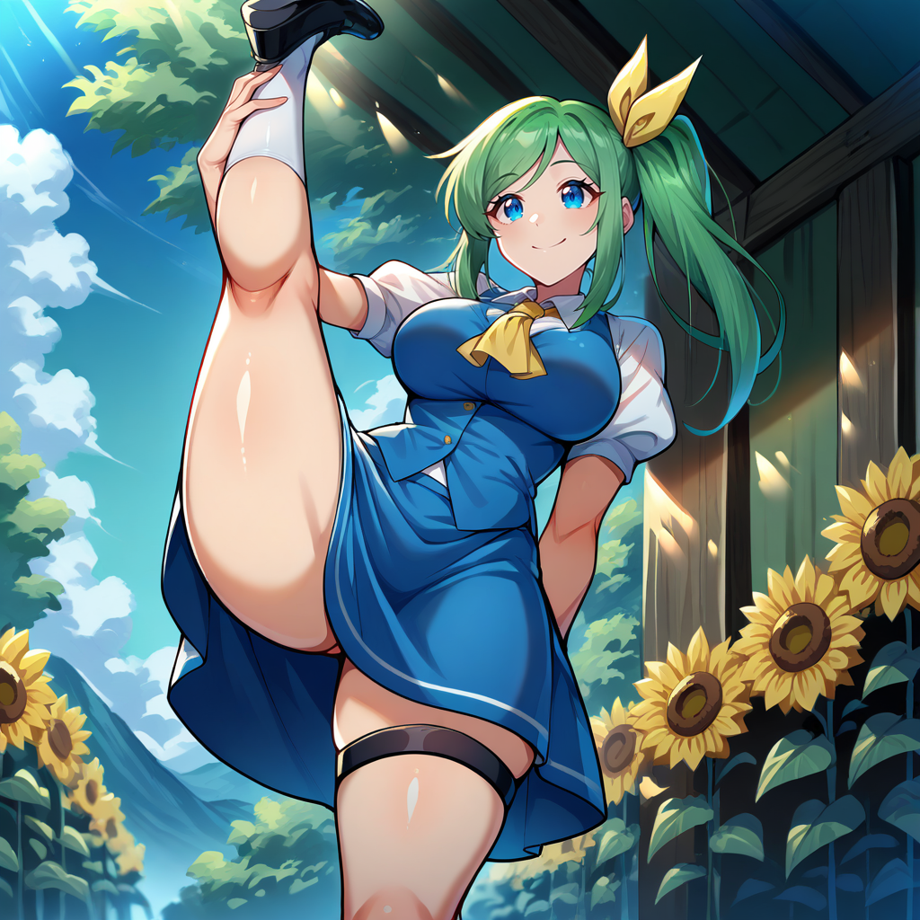 1girl, solo, daiyousei, green hair, swept bangs, side ponytail, long hair, sidelocks, blue eyes, mature