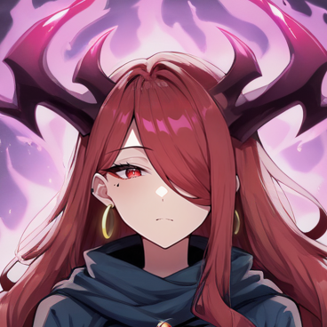 1girl, solo, red hair, very long hair, sidelocks, hair over one eye, disheveled, wavy hair, red eyes, mature female