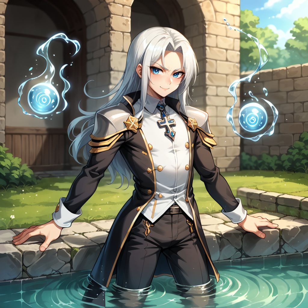 1boy, solo, androgynous, otoko no ko, white hair, long hair, parted bangs, disheveled hair, wavy hair, hair intakes, blue eyes, sephiroth \(young\)