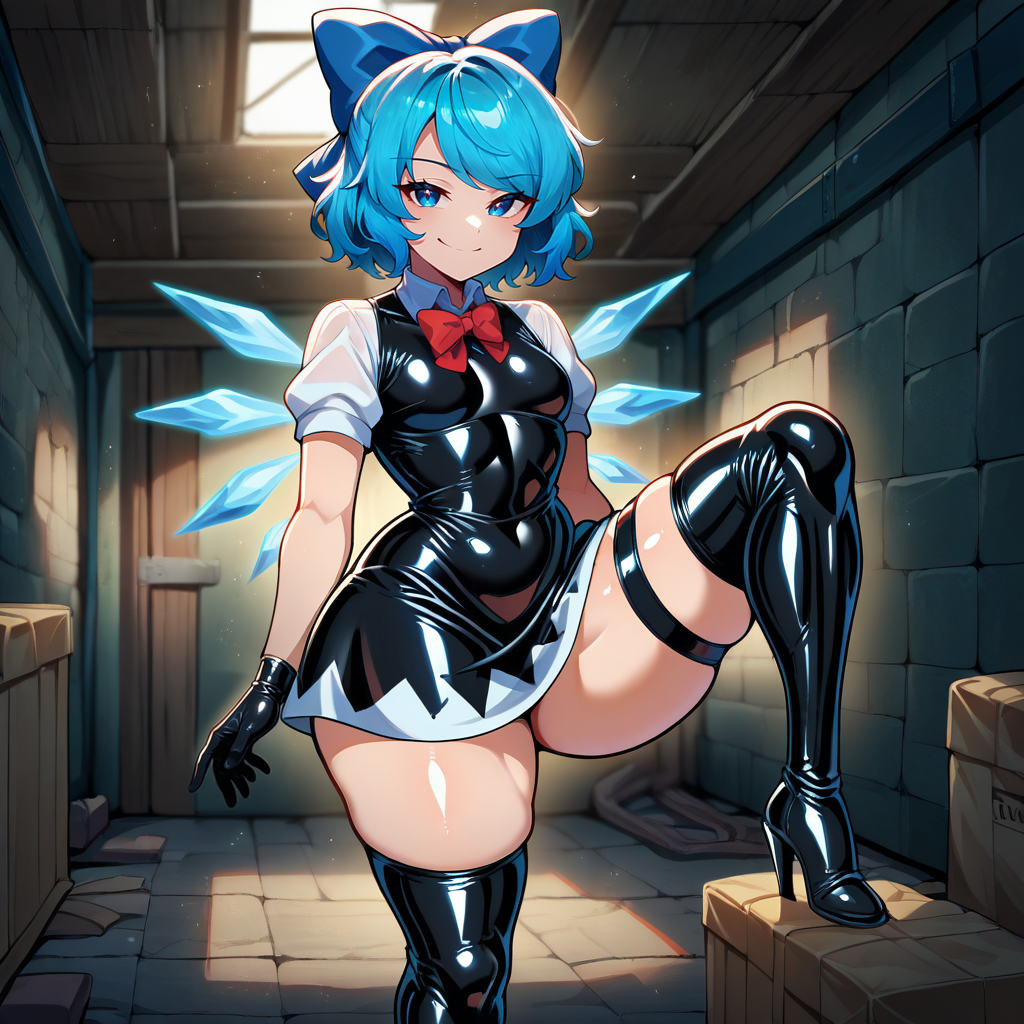 1girl, solo, cirno, blue hair, swept bangs, short hair, blue eyes