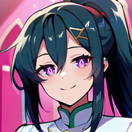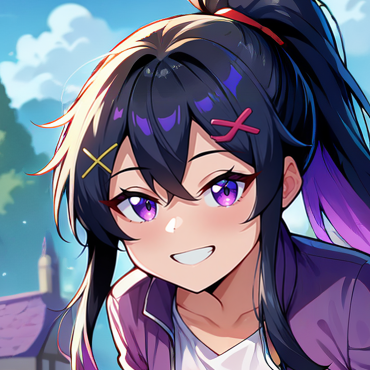 1girl, solo, black hair, sidelocks, hair between eyes, long hair, disheveled hair, ponytail, purple eyes