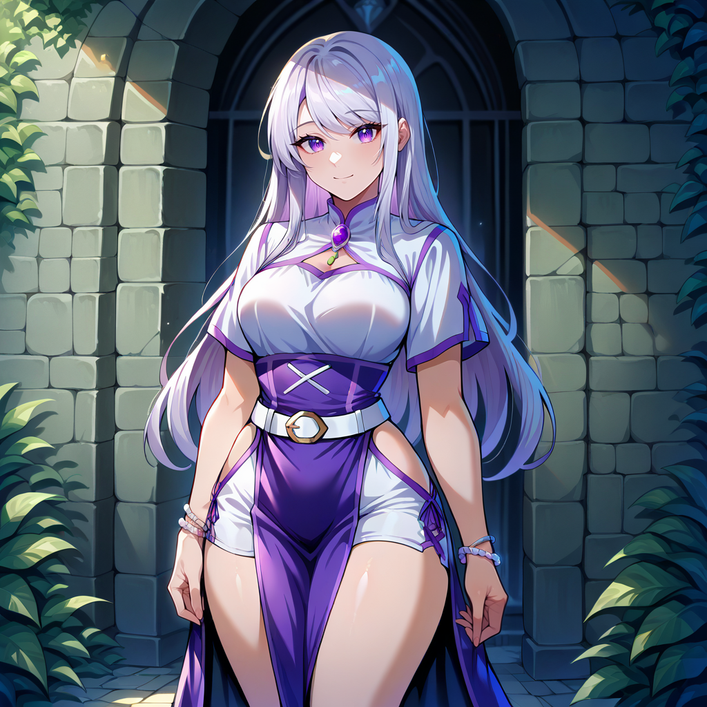 1girl, solo, white hair, long hair, hair between eyes, bangs, swept bangs, sidelocks, purple eyes