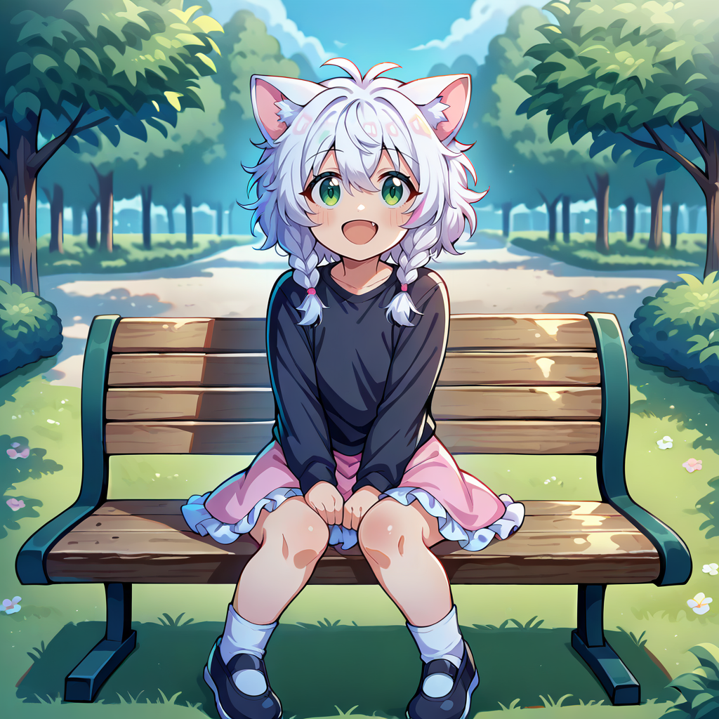Outfit Prompts cat girl, black shirt, pink skirt, frilled skirt, white socks, black shoes