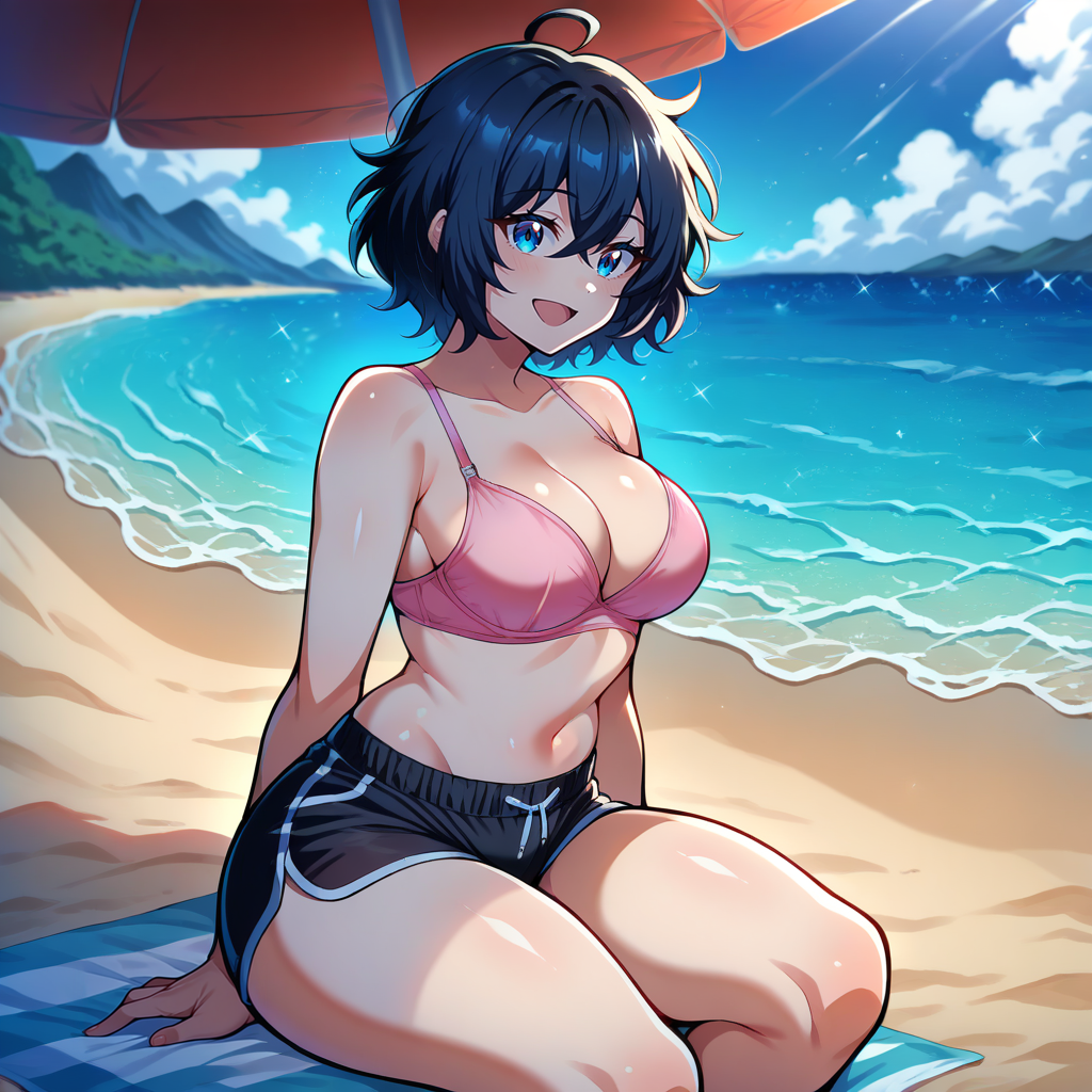 Outfit Prompts pink bra, swimsuit, pink panties, black shorts, short shorts, dolphin shorts