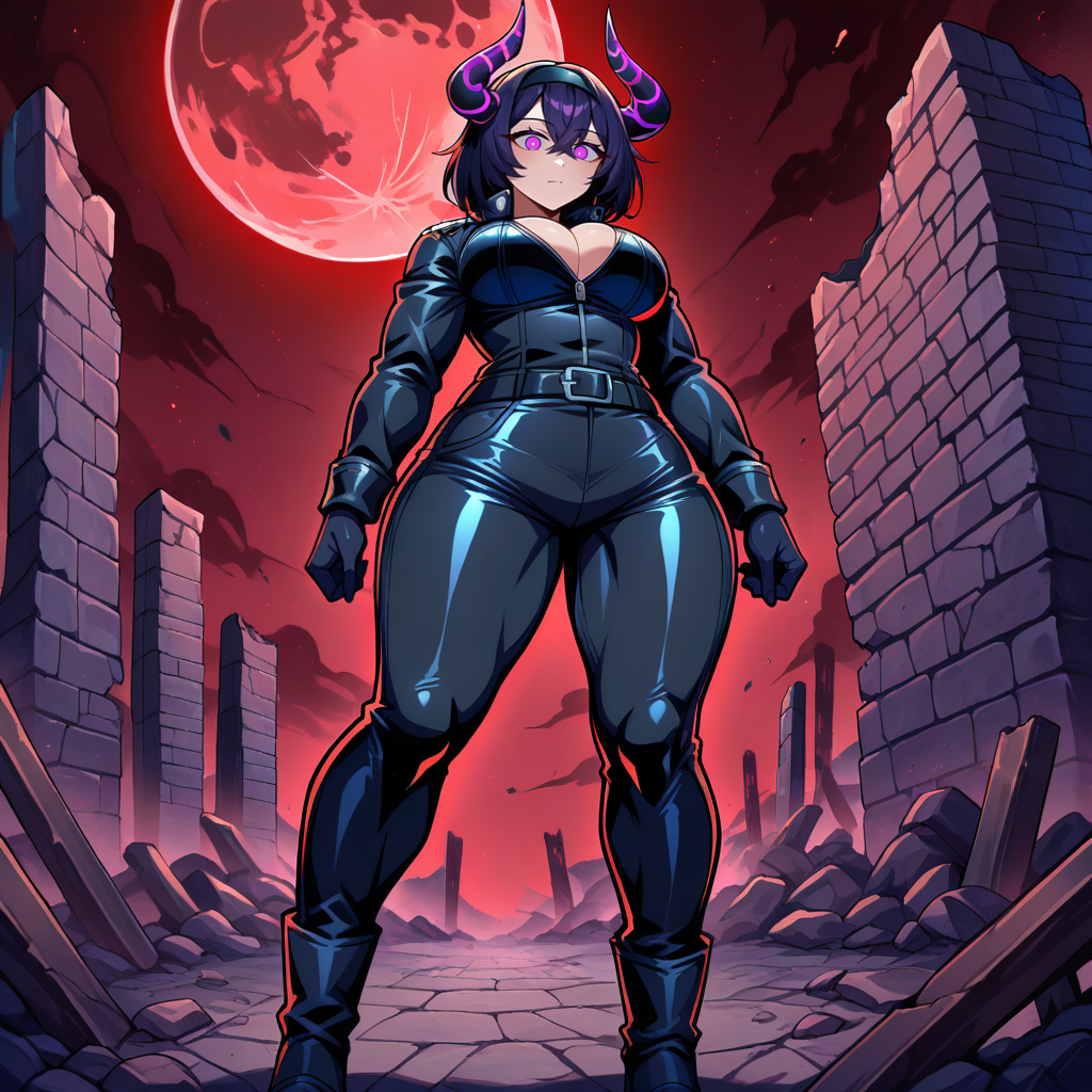 black jacket, closed jacket, leather jacket, cleavage, partially zipped jacket, collared jacket, black gloves, leather gloves, black shoulder armor, black belt, black pants, latex pants, black boots