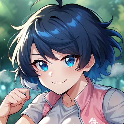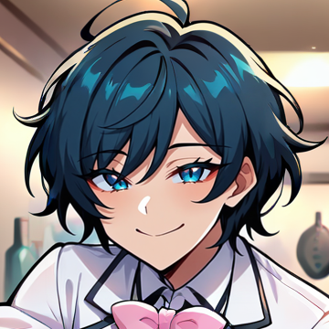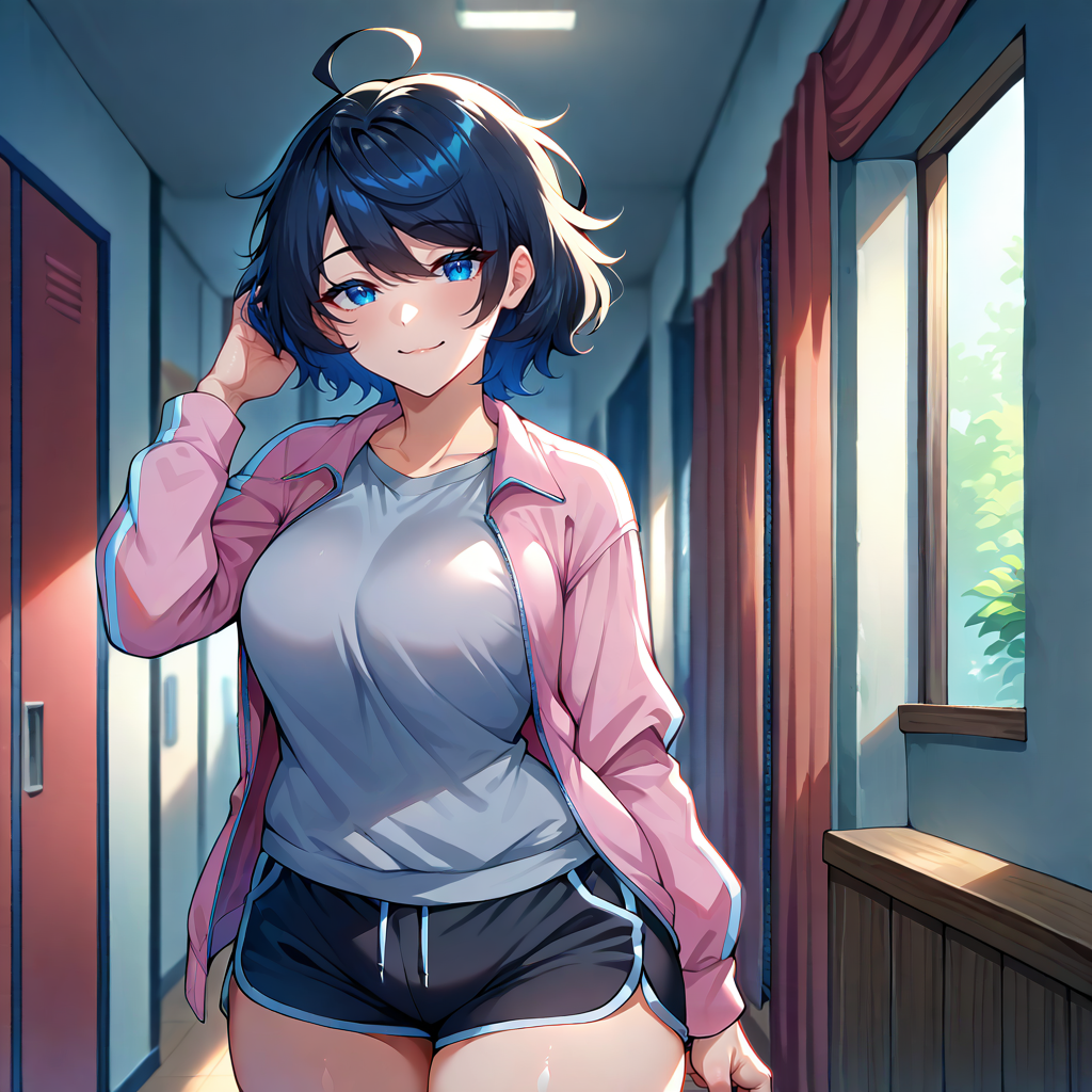 Physical Prompts 1girl, solo, black hair, short hair, messy hair, hair between eyes, swept bangs, bangs, ahoge, blue eyes