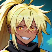 1girl, solo, <lora:male_solo_focus-000009:1>, male focus, platinium blonde hair, short hair, hair between eyes, messy hair, (very long hair, long bangs:1.2), androgynous, ahoge, ponytail, high ponytail, very short ponytail, futanari, full-package futanari, (dark skin, muscular:1.2), gold eyes
