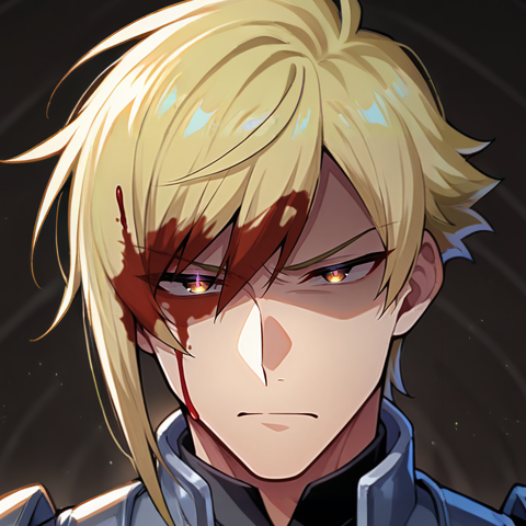 1boy, solo, <lora:male_solo_focus-000009:1>, male focus, blonde hair, hair between eyes, straight hair, single sidelock, swept bangs, short hair, muscular, brown eyes